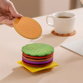 Eco-Friendly Cartoon Hamburger Silicone Placemats – Heat-Resistant Drink Coasters, 8 Piece Set