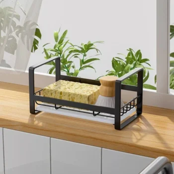 Compact and Durable Stainless Steel Kitchen Organizer – Sink Sponge, Rag, and Brush Holder with Drain Tray