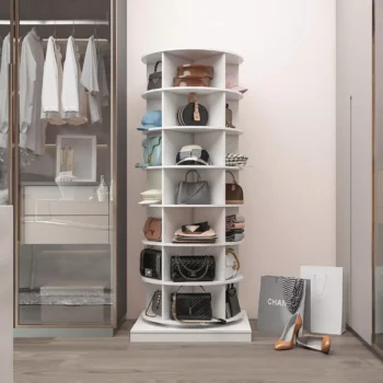 Modern Display Cabinet with Glass Doors – 5-Tier Wood Grain Bookshelf