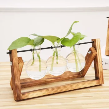 Rustic Wooden Frame Hydroponic Glass Vase