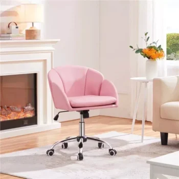 Chic Pink Home Office Rolling Desk Chair with Armrests – Adjustable & Comfortable