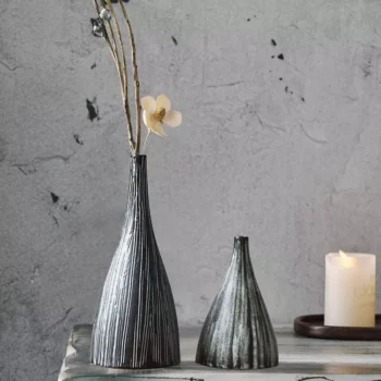 Striped Ceramic Vase – Japanese Style, Handcrafted Tabletop Flower Vase, Simple Decor