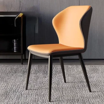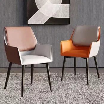 Modern Nordic Leather Dining Chair with Handrails