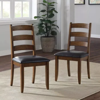 Modern Ladderback Dining Chairs Set of 2 – Aged Brown Ash with Faux Leather Seat