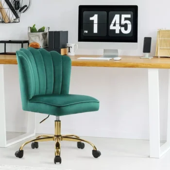 Chic Green Velvet Swivel Desk Chair: Ergonomic, Adjustable, and Rolling
