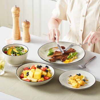 24-Piece Black Ceramic Dinnerware Set – Plates, Bowls & Soup Plates