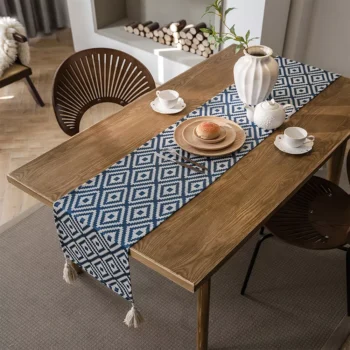 Elegant Nordic Jacquard Table Runner with Geometric Tassel Design