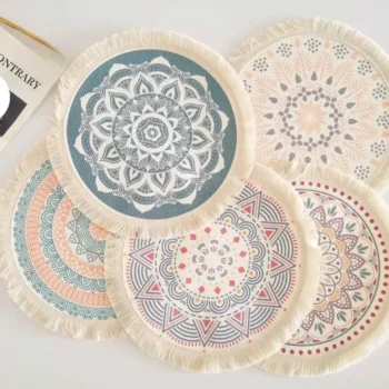 Eco-Friendly Boho Linen Round Placemats for Dining Table Decor