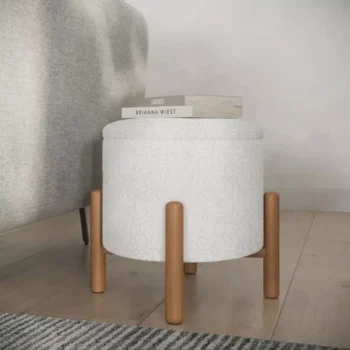 Elegant White Round Ottoman with Storage