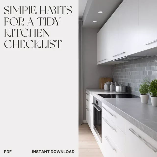 Don’t let clutter steal your peace. Download the Simple Habits for a Tidy Kitchen Checklist today and discover what simple hacks keep counters clear — for good. A calmer, cleaner kitchen is just one click away!